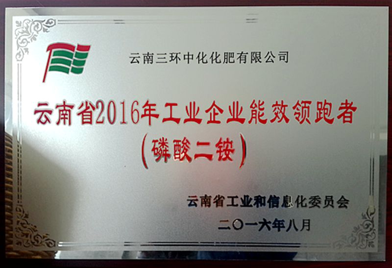 2016年12月7日,云南省工業(yè)和信息化委員會(huì)授予火電、鋼鐵、工業(yè)硅、電解鋁、黃磷、電石、合成氨、磷銨、水泥、白砂糖、卷煙等11個(gè)行業(yè)的11家企業(yè)云南省工業(yè)企業(yè)能效領(lǐng)跑者稱號(hào)。公司旗下云南云天化股份有限公司云峰分公司、云南三環(huán)中化化肥有限公獲得云南省工業(yè)企業(yè)能效領(lǐng)跑者稱號(hào)。